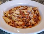 And, to be really traditional, you’ll serve that Bolognese with fresh egg-based pasta, perhaps fettuccine or in a lasagna, and, of course, include cheese in or on the dish. That said, nothing pleases myMEGusta more than a bowl of good quality spaghetti (the hard wheat kind, no eggs) with a dollop of this fabulous sauce. And, it’s not bad on spaghetti squash, either.