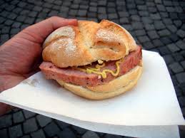 A Saturday lunch treat for my late father was a fried baloney sandwich, and, for a kid in the 1950’s, it was a tasty twist on an everyday meat. That said, a slice of really good baloney style sausage on excellent bread with tasty mustard is a really good sandwich, as exemplified by leberkase I cannot wait to have on my next trip to Munich.